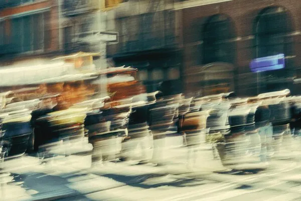 Perhaps what stands out most is Mo’s impressive sense of composition and understanding of light and tone. He often photographs during the late-afternoon and early-evening light, where the softened sunlight imbues each scene with shades of yellow, pink, and blue, reflecting both in the sky and the water, creating harmonious visual echoes. In one image, a blurred runner traverses the promenade, juxtaposed against the still presence of seated figures and softly illuminated boats on the river, a poetic tension between motion and stasis. Another depicts a vendor with bright cotton candy in the foreground, the modern luxury hotel in the distance, capturing the dialogue between intimate human moments and the city’s rapid development