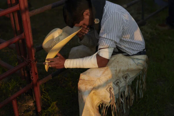A bull rider quietly prays on his own before the rodeo begins. Part of the series “Rodeo Boys”. In 2016 I moved to Madison County, NC. A year later I began photographing at the local rodeo. I went there at first having never been to a rodeo at all. Since then, I have returned countless times to photograph the boys and men that inhabit that mountain top arena every other Saturday night. I’ve been interested in exploring cultures of masculinity and the rodeo proved to be a potent microcosm in that regard. I hope my images provide a nuanced and empathetic eye towards the people I photograph. This is an ongoing project. © Jack Sorokin
